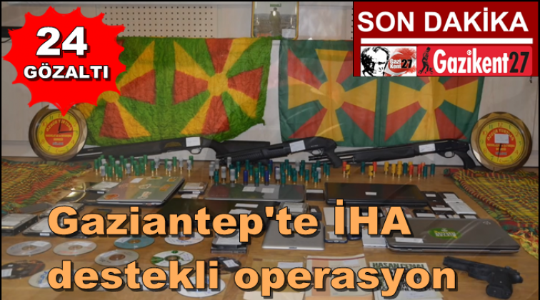Gaziantep'te PKK/KCK-PYD/YPG terör örgütlerine yönelik insansız hava aracı desteğiyle gerçekleştirilen operasyonda, 24 kişi gözaltına alındı.