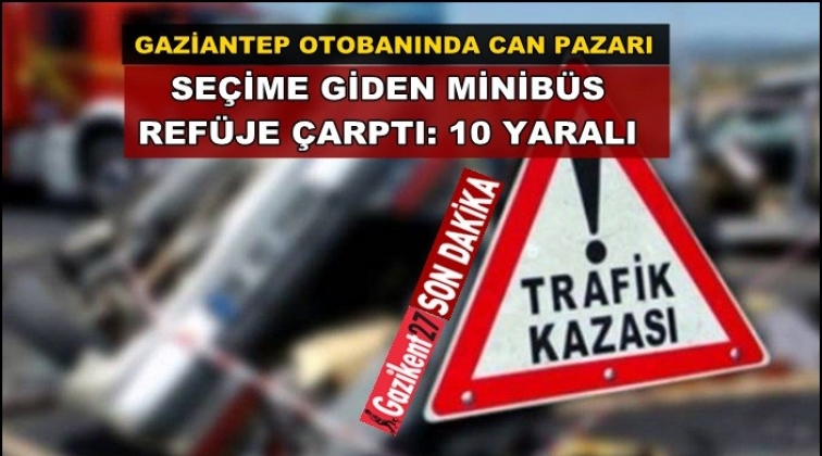 Gaziantep'in Nurdağı ilçesinde Adana'dan Mardin'in Derik ilçesine muhtarlık seçimi için giden yolcuları taşıyan yolcu minibüsünün devrilmesi sonucu ikisi çocuk 10 kişi yaralandı.