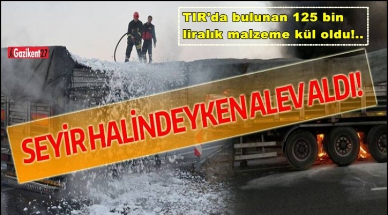 Gaziantep'in Nurdağı ilçesinde, seyir halindeyken alev alan kumaş ve inşaat malzemesi yüklü TIR'daki yangında 125 bin liralık malzeme kül oldu.