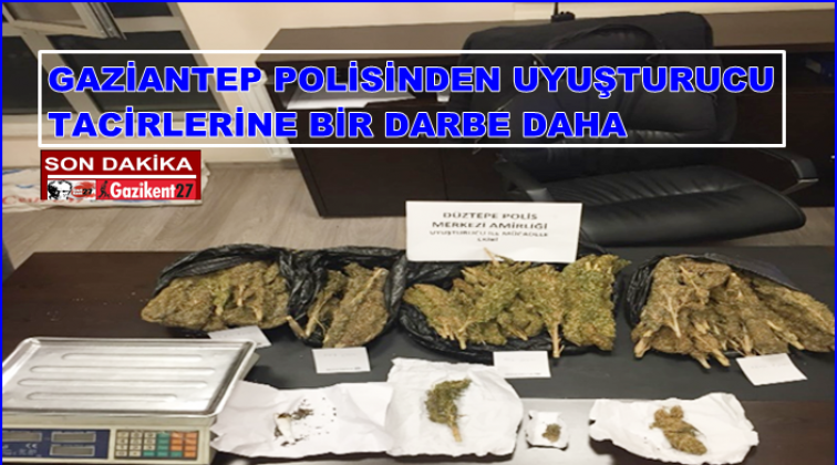 Gaziantep Emniyet Müdürlüğü'nden yapılan açıklamada, "Şahinbey İlçesi Turan Emeksiz Mahallesinde A.Ç isimli şüpheli şahıs tarafından uyuşturucu madde satışı yapıldığı yönünde bilgiler alınması üzerine, Şahinbey İlçe Emniyet Müdürlüğümüze bağlı Düztepe Şehit Hüseyin Cengiz Polis Merkezi Amirliği ekiplerimizce şüpheli şahıs operasyonla yakalanarak gözaltına alındı. Şüpheli şahısın ikametinde yapılan aramada; 4 farklı poşet içerisinde 3 bin 466 gram ve 5 adet beyaz kâğıda sarılı satışa hazır vaziyette 16 gram olmak üzere toplamda 3 bin 482 gram esrar maddesi ile bir adet dijital terazi ele geçirildi. Şüpheli şahıs " Uyuşturucu Madde Ticareti Yapmak " suçundan hakkında yapılan yasal işlemler sonucu sevk edildiği adli makamlarca tutuklanmasına müteakip cezaevine teslim edildi." denildi.