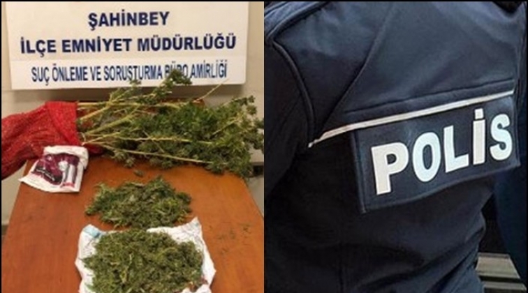 Gaziantep'te şüpheli şahsın ikametinde yapılan aramada, 6 kök hint keneviri, 100 gram esrar maddesi ve 100 gram yaş hint keneviri ele geçirildi.