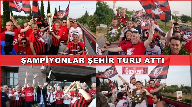 Havaalanında yöneticilerin ve futbolcuların yer aldığı üstü açık otobüs ile şehir turuna çıkan kırmızı-siyahlıları Gaziantepli sporseverler ellerindeki bayraklarla karşılayarak bu coşkuya ortak oldu.