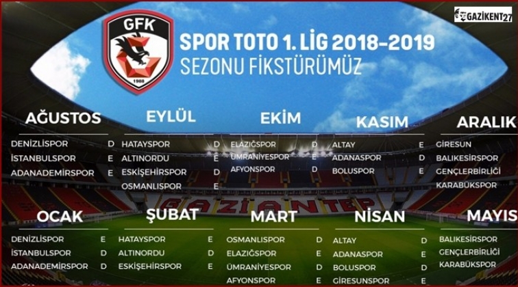 Gazişehir Gaziantep'in de yer aldığı Spor Toto 1. Lig'de 2018-2019 sezonu fikstür çekimi yapıldı. Yeni sezon fikstürüne göre Gazişehir'in ilk hafta rakibi Denizlispor oldu.