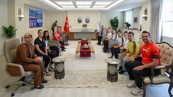 Gaziantep Büyükşehir Belediyesi (GBB) Spor Kulübü sporcuları, ulusal ve uluslararası müsabakalarda kazandıkları derecelerle Gaziantep’in gururu oldu. Başarılarının ardından sporcular, Gaziantep Büyükşehir Belediye Başkanı Fatma Şahin’i makamında ziyaret etti.