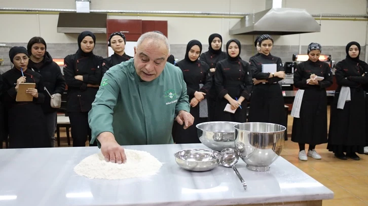Gastronomi şehri Gaziantep’in coğrafi işaret olarak tescillenen lezzeti katmerin yapımı Gaziantep İslam Bilim ve Teknoloji Üniversitesi Gastronomi Uygulama Mutfağı’nda Gastronomi öğrencilerine uygulamalı olarak anlatıldı.