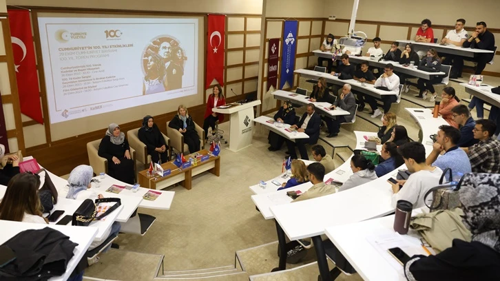Cine Amfi’de düzenlenen ve öğrencilerin yoğun ilgi gösterdiği söyleşi, "Cumhuriyet’in 100. Yıl Marşı" ve Cumhurbaşkanlığı İletişim Başkanlığı tarafından hazırlanan "Cumhuriyetimizin 100 Yılında Kadınlar" temalı videonun gösterimi ile başladı.