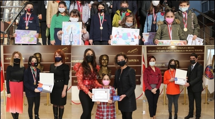 Gaziantep Kolej Vakfı Özel Okulları tarafından düzenlenen “Dr. Özlem Türeci ile Prof. Dr. Uğur Şahin'e Vefa Projesi” kapsamında ki yarışmalara katılarak çeşitli dereceler elde eden öğrenciler ödüllendirildi. Covid-19 önlemleri kapsamında düzenlenen ve yarışmalarda çeşitli dereceler elde eden öğrencilere GKV Özel Okulları Başarı Madalyaları ve başarı belgelerinin takdim edildiği ödül törenine GKV Özel Okulları Genel Müdürü İsmet Tiryaki, proje koordinatörleri GKV Özel Okulları Yabancı Diller Bölüm Başkanı Selin Yaman, GKV Özel Okulları Görsel Sanatlar Zümre Başkanı Hayal Bazoğlu ve idarecilerimiz katıldı.