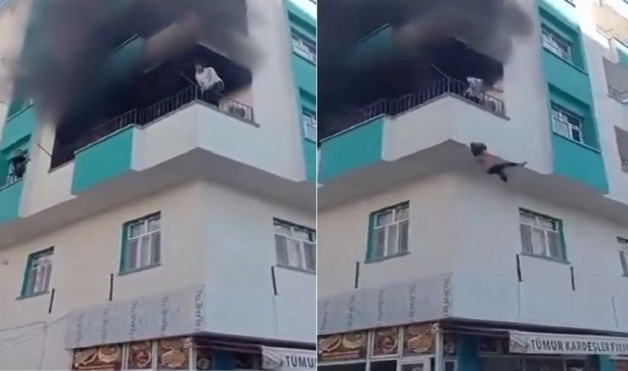 Daireyi saran alevler ve yoğun duman sebebiyle dışarı çıkamayıp mahsur kalan 2 çocuk, evin balkonundan çevredeki vatandaşların açtığı battaniyeye atlayarak kurtuldu. Bu anlar kameralarca kayda alındı.
