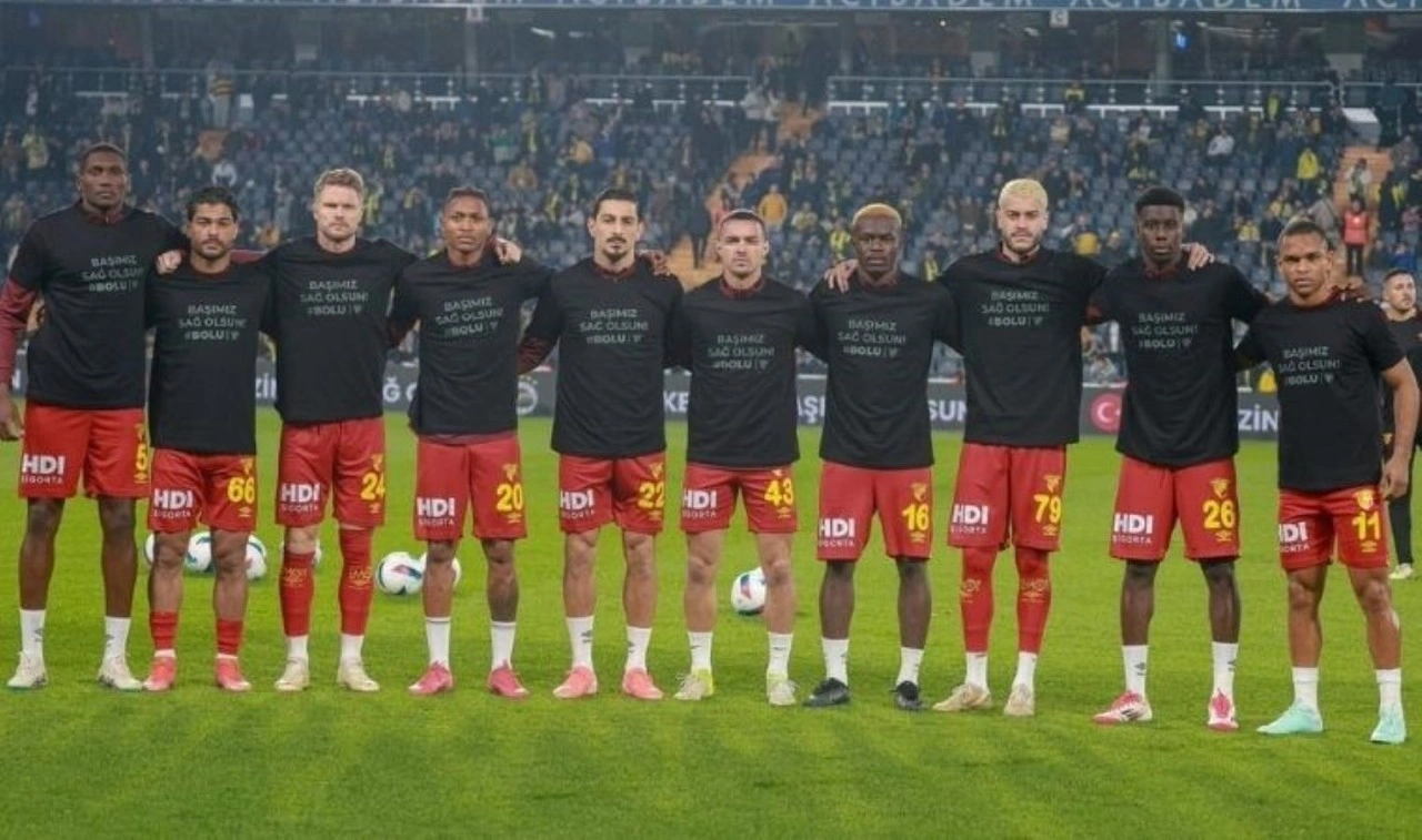 Takımını deplasmanda da yalnız bırakmayan Göztepeli konuk taraftarlar stada sıkı bir arama ve kontrolden sonra girebildi. Göztepe, ısınmaya üzerinde "Başımız sagolsun Bolu" yazan siyah tişörtle çıktı.