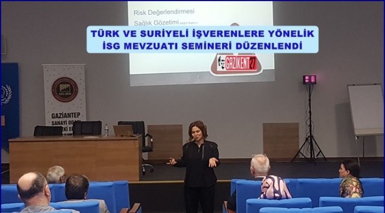 Gaziantep Sanayi Odası Mesleki Eğitim Merkezi ve Uluslararası Çalışma Örgütü (ILO) işbirliği ile başlatılan proje çerçevesinde Türk ve Suriyeli İşadamlarına yönelik, “İşverenler için İSG Mevzuatı Seminerleri” gerçekleştirildi.