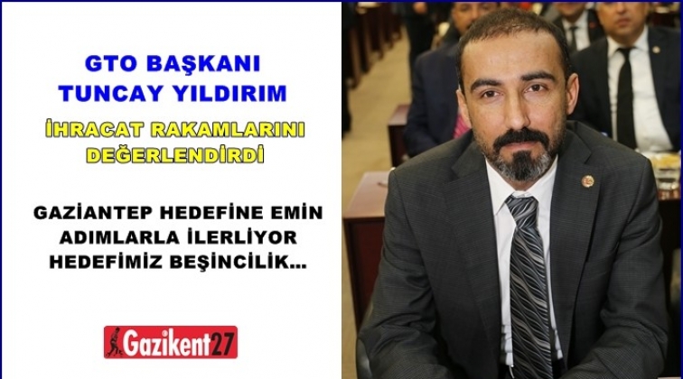 Türkiye İhracatçılar Meclisi (TİM) tarafından açıklanan Nisan ayı ihracat rakamlarını değerlendiren Gaziantep Ticaret Odası (GTO) Yönetim Kurulu Başkanı Tuncay Yıldırım, Gaziantep’in ihracatını geçen yılın Nisan ayına göre arttırdığını ve yılın ilk dört ayında Gaziantep ihracatının 2,2 milyar doları aştığını söyledi.