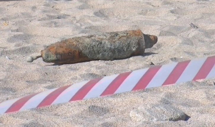 Ekipler, olay yerindeki incelemeler sırasında halk plajına girişleri kapattı. Patlayıcı madde uzmanları tarafından yapılan ilk incelemelerde, havan mermisinin 107 milimetre çapında olduğu belirlendi.