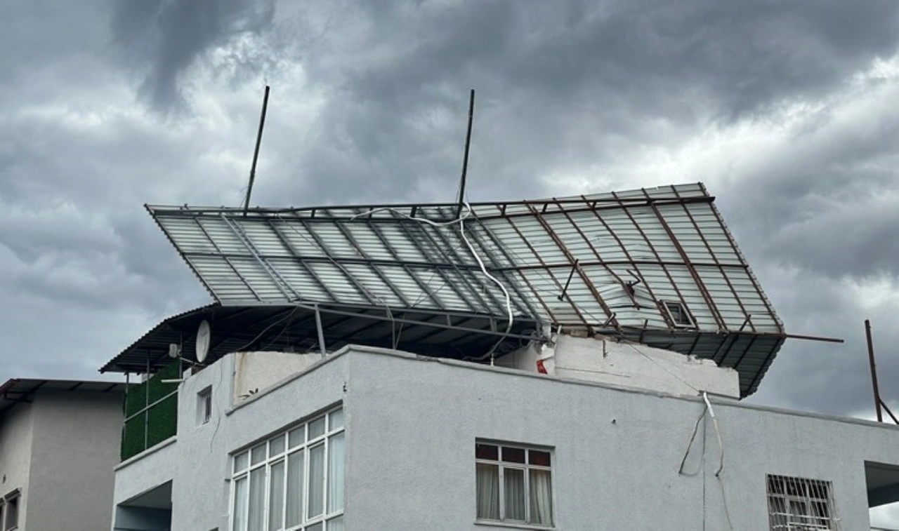 Fırtına nedeniyle kentteki bazı binaların ve Akçay Mahallesi'ndeki sebze halinin çatısı uçtu.