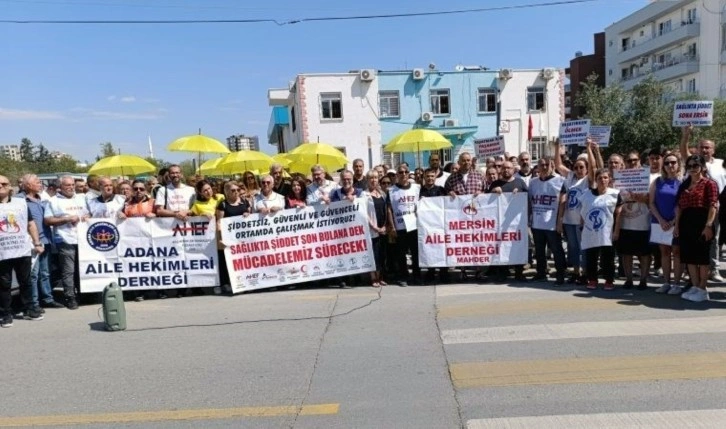 Olayın ardından Mersin ve çevre illerden gelen sağlık çalışanları, aile sağlığı merkezi önünde yaşanan şiddeti protesto etti.