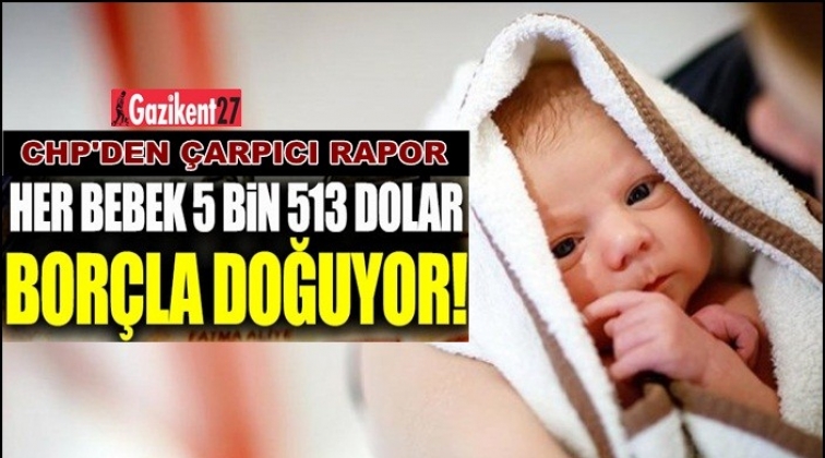 CHP’nin hazırladığı 'Türkiye Krizi' başlıklı rapora göre, 2002 yılında doğan her çocuk bin 963 dolar borçla dünyaya gözlerini açarken, 2018’de rakam 5 bin 513 dolara çıktı.