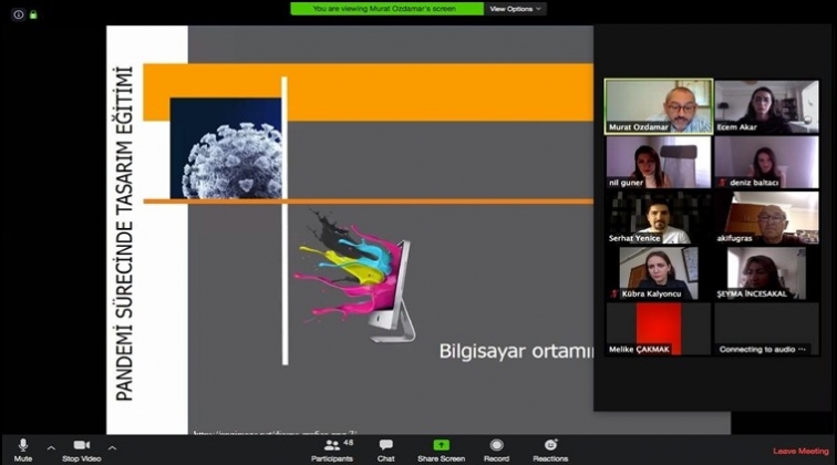 ZOOM Konferansında ki süreyi iyi değerlendirmeleri gerektiğini söyleyerek konuşmasına başlayan Özdamar, Pandemi sürecinde tasarım eğitimi konulu sunumunu gerçekleştirerek sürecin avantaj ve dezavantajlarını katılımcılara anlattı. Entegrasyonun önemine değinen Özdamar: “Tasarımların üretilmesi lazım. Uzaktan autocad ve birçok programla tasarımı kullanabiliriz. Bu da bize üçüncü boyutta tasarımı konuşma fırsatı sağlar. Dijital teknolojilerin kullanım amaçlarından biri de gerçeği en yakın olanı ortaya koyabildiğimizi sağlamasıdır. Hocalarımızla bu mecrada gerçeği paylaşıyoruz. Bu alandan ne kadar faydalanabilirsek iyi. Birçok programı aynı anda kullanabilme ve birçok görüntüyü bir arada bulabilme gibi sürecin iyi yanları çok fazla. Entegre süresi hızlandı. Programlar çok hızlı yenileniyor, bunları iyi yakalamak lazım. Temel tasarımdan gelen lokasyonları kaybetmeyin. Özellikle jüri sırasında çok işe yarıyor. Tasarımın üretilmesi ve ortaya koyulması lazım.En büyük sıkıntıyı zaman konusunda yaşıyoruz. Toplu alanlarda çok fazla birlikteliği oluşturmadan mimarı planlamalar yapılacaktır. Tasarım ortamında tamamen sistem çalışıyor. Bu sürecin dezavantajları da var ama biz işimizde iyi olduğumuz sürece her türlü ayakta durabiliriz. Bu süreçte emek verenlerin ön safta olacağına, işsizliğin artacağını değil, her işin herkes tarafından değil profesyoneller tarafından yapılacağına inanıyorum.Bütün hocalarımla birlikte ve öğrencilerle bu konferansı yapmaktan mutluluk duydum” diyerek tecrübe ve birikimlerini HKÜ öğrenciler ile paylaştı.