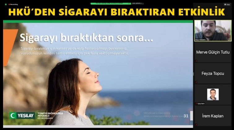 Hasan Kalyoncu Üniversitesi (HKÜ), sigara bırakmak isteyenlere yönelik çevrimiçi; “Dünya Sigarayı Bıraktırma Günü Etkinliği” düzenleyerek tütün mamullerini bıraktırma yönünde farkındalık oluşturdu.