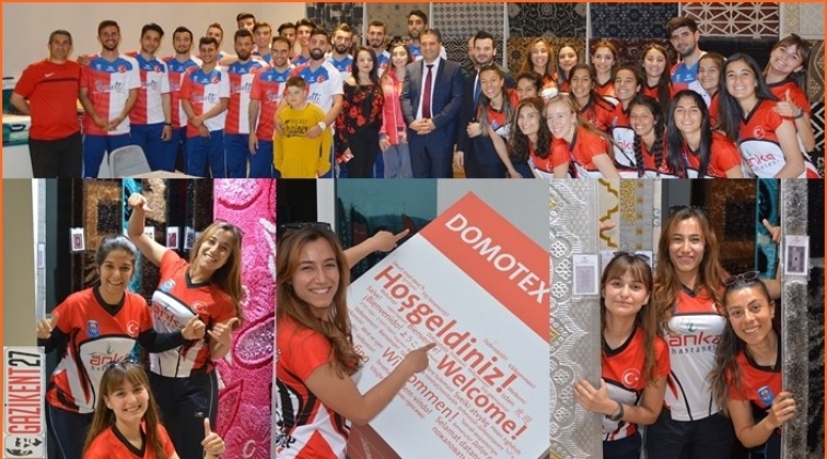Gaziantep Ortadoğu Fuar Merkezi (OFM)'de kapılarını açan Domotex Türkiye 2019 Halı ve Zemin Kaplamaları Fuarı'nı ziyaret eden Gaziantep Polisgücü Spor Kulübü kadın ve erkek hokey takımları Gaziantepli halıcıların büyük ilgisini gördü. Avrupa Şampiyonu her iki takım sporcularıyla sohbet eden halıcılar takımlara gerekli desteği vereceklerini ifade ettiler.