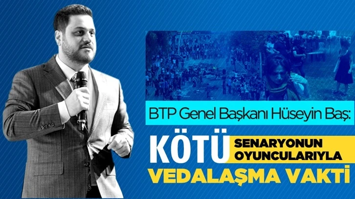 BTP Genel Başkanı Hüseyin Baş, sosyal medya hesabında “Kötü senaryonun kötü oyuncularıyla vedalaşma vakti” notuyla bir video yayınladı. Baş, Türkiye tarihini 1950’de doğmuş bir çocuk üzerinden anlatarak yaşanan zorluklara dikkat çekti.