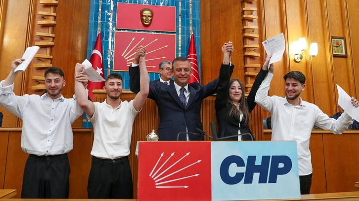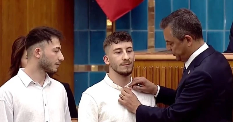 CHP Genel Başkanı Özgür Özel, partisinin grup toplantısında dördüzlere CHP rozeti taktı. Üyelik kayıtlarının ardından salonda, "Gençlik seninle durma ilerle" sloganları atıldı.