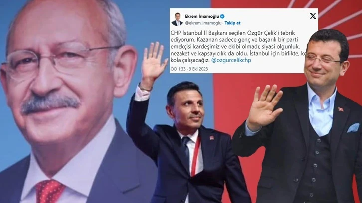 "CHP İstanbul İl Başkanı seçilen Özgür Çelik'i tebrik ediyorum. Kazanan sadece genç ve başarılı bir parti emekçisi kardeşimiz ve ekibi olmadı; siyasi olgunluk, nezaket ve kapsayıcılık da oldu. İstanbul için birlikte, kol kola çalışacağız."