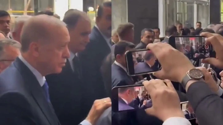 Türkiye Büyük Millet Meclisi'nde (TBMM) yürüdüğü sırada bir kadın gazetecinin Erdoğan'a yönelttiği 'İmamoğlu' sorusu ise korumaların sert müdahalesiyle engellendi.