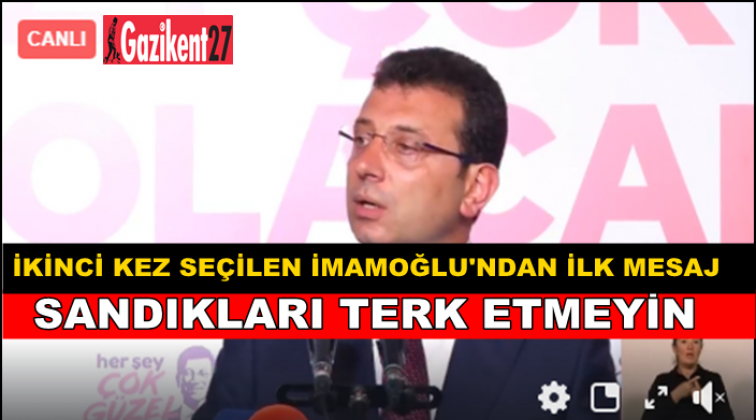 Seçimin kazananı ben değilim, bu seçimin kazananı demokrasidir, 16 milyon İstanbulludur. Bugün 16 milyon İstanbullu demokrasiye olan inancımızı tazelemiştir. yalnız bana oy verenler değil, seçimleri büyük bir sükunet içerisinde geçiren tüm vatandaşlarımız sağlamıştır. Her birine yürekten teşekkür ediyorum. Sizler Türkiye’nin demokrasi itibarını dünyanın gözü önünde korudunuz. Demokrasi geleneğine sahip çıktınız.