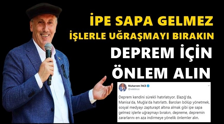 Eski CHP Yalova milletvekili Muharrem İnce, Elazığ, Manisa ve Muğla’da peş peşe meydana gelen depremlere dikkat çekti.