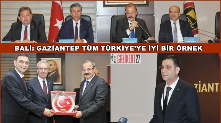 Gaziantep'in sıkıntılı dönemlerde moral düzelten bir kent olduğunu vurgulayan Bali, “Böyle dönemlerde üreten, satan, ticaret yapan yerlerle daha fazla iç içe olmak gerektiği kanaatindeyim. Burada o enerjiyi görüyorum. Şu anda yaşadığımız hadiseden çıkış, büyük ölçüde ihracat, döviz kazandırıcı faaliyetler ve dış talebe hitap eden katma değerli üretimle olacak. Bunun adreslerinden biri Gaziantep’tir. Sanayinin üretimden aldığı pay Türkiye genelinde yüzde 30'lu seviyelerde, Gaziantep'te yüzde 42'nin üzerinde. Bu fark, şehrin üretme potansiyelini ortaya koyuyor” şeklinde konuştu.