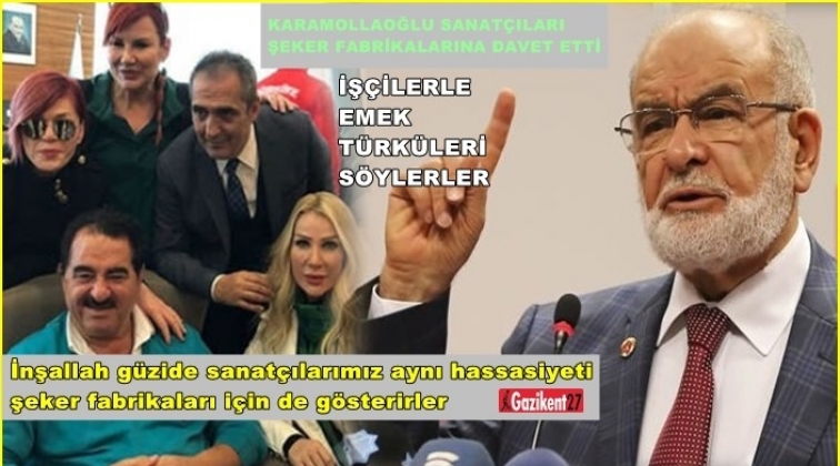 Saadet Partisi Genel Başkanı Temel Karamollaoğlu, haftalık olağan basın toplantısında konuştu. Sınıra giden bazı ünlü isimlere çağrıda bulunan Karamollaoğlu, “İnşallah bu güzide sanatçılarımız aynı hassasiyeti şeker fabrikaları için de gösterirler. İşçilerimizle beraber emek türküleri söylerler. Biz kendilerini davet ediyoruz. Sanatçılarımızı, işçimizin, emekçimizin, üreticimizin yanında da görmek istiyoruz. Hatay ziyaretleri askerimize nasıl moral olduysa, bir şeker fabrikası ziyareti de emekçilerimiz için moral kaynağı olacaktır. Hem böylece, ‘Külliye'nin değil Türkiye'nin sanatçısı' olduklarını gösterme imkânı bulmuş olurlar” dedi.