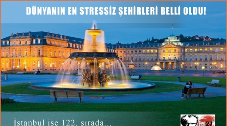 Medya takibinin öncü kurumu Ajans Press, stres düzeyine göre ülke sıralamalarını ve medya başlıklarını inceledi.Ajans Press’in ZipJet’den ve medya yansımalarından derlediği bilgilere göre, dünyanın en stressiz şehirleri listesinin birinci sırasında Almanya’dan Stuttgart yer alırken, İstanbul bu listeye 122. sıradan giriş yaparak dünyanın en stresli 28. şehri oldu. Sıralama, illerdeki nüfus yoğunluğu, ekonomik durum, trafik, hava kirliliği, refah düzeyi, işsizlik, borç, sosyal güvenlik, satın alma gücü, sağlık ve cinsiyet eşitliği baz alınarak hazırlandı.