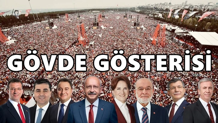 "Ülkemizin her yerinden yükselen demokrasi çığlığını İstanbul'a getirdik. Demokrasi çığlığını tüm dünya duyuyor. Tüm dünya izliyor. Sağcı solcu demeden, sünni alevi demeden hep beraber daha fazla demokrasi diyecek miyiz? Hep beraber, Sayın Kemal Kılıçdaroğlu'nu 13. Cumhurbaşkanı yapacak mıyız? TBBM'de çoğunluğu sağlayacak mıyız? Sözümüzü aldık.