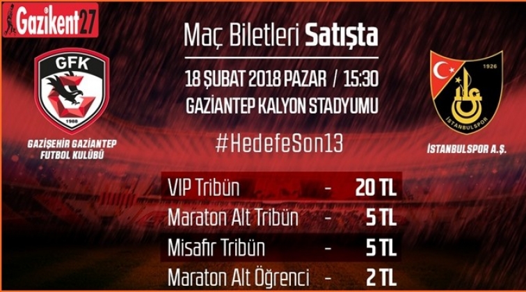 Gazişehir Gaziantep FK'nın, TFF 1. Lig'in 22. haftasında kendi sahasında oynayacağı İstanbulspor maçı biletleri satışa sunuldu.