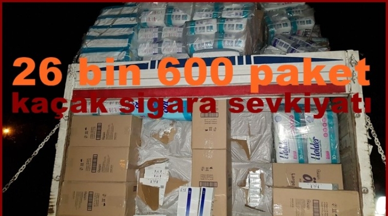 Gaziantep'te kaçak sigara sevkiyatı yapan bir kamyonda yapılan aramada 26 bin 600 paket muhtelif markalarda gümrük kaçağı sigara ele geçirildi.