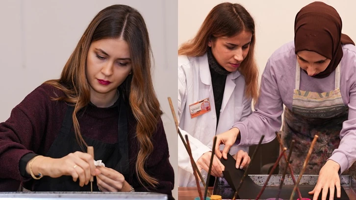 EBRU SANATINI YAPARKEN HUZURLU OLDUKLARINI GÖRÜYORUZ