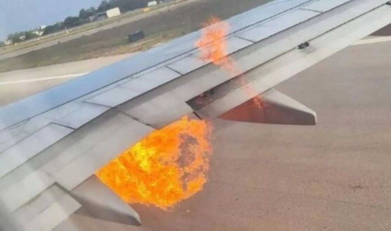 Uçak pistin başında kalkış için hazırlanırken motor bölümünden çıkan alevler üzerine acil durum prosedürleri devreye sokuldu.