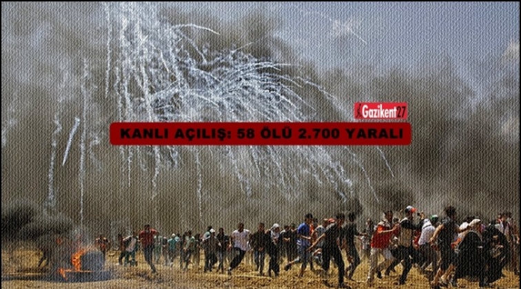 İsrail askerleri Gazze sınırında düzenlenen gösterilere katılan 58 Filistinliyi öldürdü. Olaylarda 2700'ü aşkın Filistinli ise yaralandı.