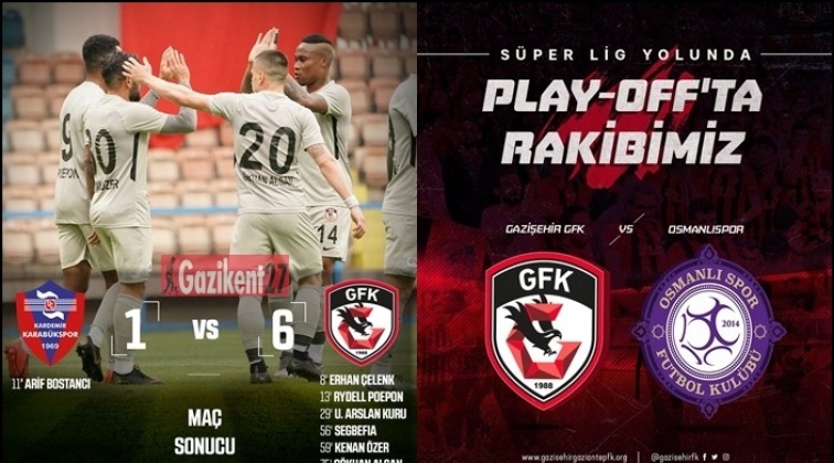 Gazişehir Gaziantep, Spor Toto 1. Lig'in son maçında Kardemir Karabükspor’u 1-6 mağlup ederek, Süper Lig yolunda adını play-off’a yazdırdı. Play-off ilk turunda Gazişehir'in rakibi ise Osmanlıspor oldu.