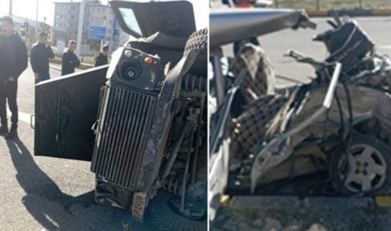 Uygulama noktasında görevli polisleri taşıyan zırhlı araç ile sürücüsü öğrenilemeyen otomobil kavşakta çarpıştı. İhbar üzerine bölgeye polis ve sağlık ekibi sevkedildi.