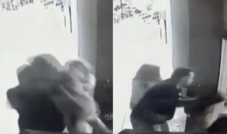 O anlar, bir işyerinin güvenlik kamerasına yansıdı. Daha sonra anne ile bir kadın, babayı sakinleştirmeye çalışıp, çocuğu alıp salona gitti.