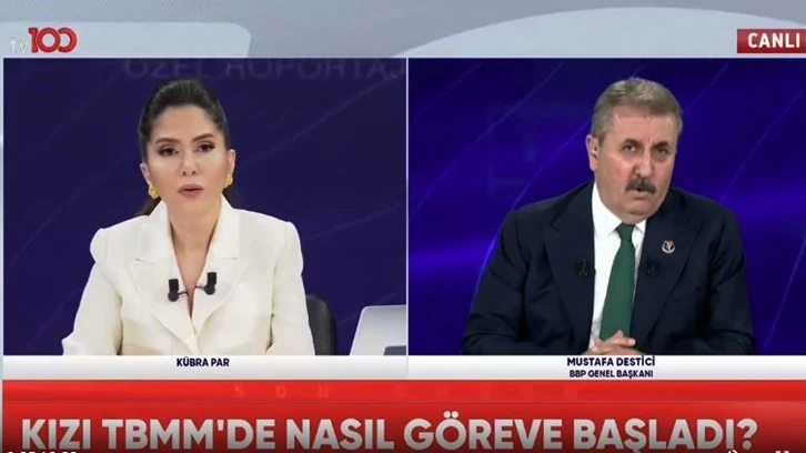 Destici, TV100'de yayınlanan programda Kübra Par'ın sorularını yanıtladı. Programda Destici'nin kızının TBMM'de nasıl göreve başladığı konuşulurken Kübra Par'ın sorduğu soru üzerine ortam gerildi.