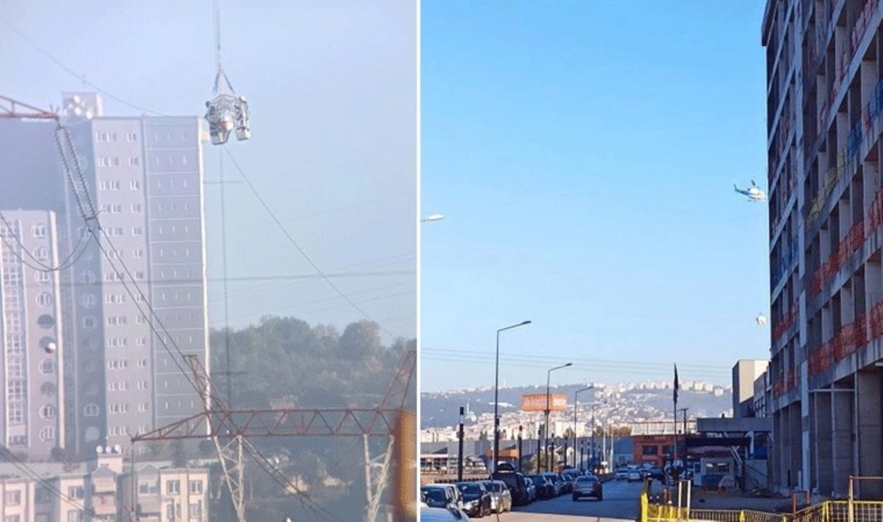 Kentin farklı bölgelerinde dakikalarca asılı kalan helikopterin ne yaptığını merak eden yurttaşlar telefonlara sarılarak o anları sosyal medya hesaplarından paylaştı.