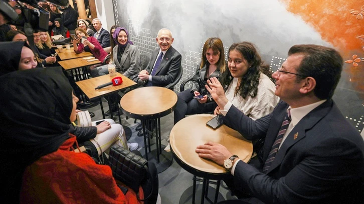 Gençler, kendilerini ziyaret eden Kemal Kılıçdaroğlu, Ekrem İmamoğlu ve Mansur Yavaş'a kahve ısmarladı.