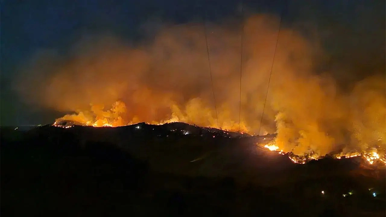 Manisa'nın Akhisar ilçesine bağlı Karaköy Mahallesi'ndeki ormanlık alanda çıkan yangını söndürme çalışmaları devam ediyor.