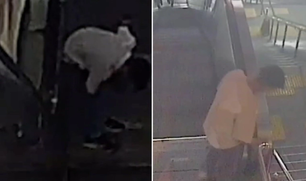 Görüntülerde, kimliği belirsiz kişiler tarafından çalışmakta olan yürüyen merdivenlerin acil düğmesine basılarak durdurulduğu görüldü.