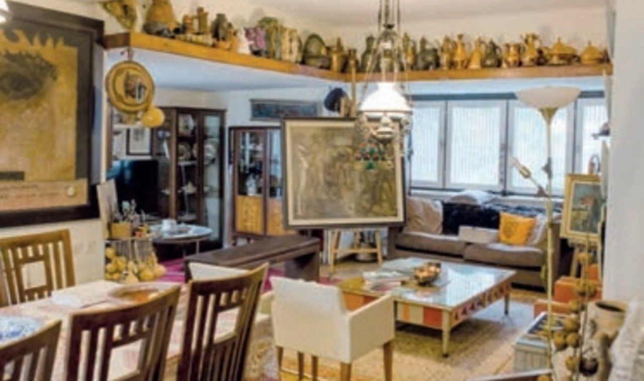En büyük eserlerin bir tanesi 32 metrekare. Bir tanesi ise 14 metrekare. Rahmi Eyüboğlu, 32 metrekare olan eseri evde tutamadığı için bir galeriden rica etmiş orada duruyor. 14 metrekare eseri ise güvenli saklayabilmek için sardırmış evde duruyor. Daha neler var neler; Eren Hanım ve Bedri Bey’in kâğıt işleri ve yağlı boya tuval işleri dahil yaklaşık 2 bin den fazla eser. NATO’ya yapmış olduğu mozaik panonun orijinali, mezuniyet resmi, ünlü heykeltıraş Mari Gerekmezyan’ın yapmış olduğu büst, elyazısıyla şiirler, notlar, duvarlarda Bedri Rahmi Eyüboğlu’na ve eşi Eren Hanım’a ait eskizler, tablolar, Bedri Rahmi’nin Güzel Sanatlar Akademisi diploması, Yahya Kemal’in imzaladığı bir fotoğraf, Ara Güler imzalı fotoğraf, raflarda ve sehpaların üzerinde seramik işleri... Saymakla bitiremeyeceğimiz eserler yer alıyor evde.