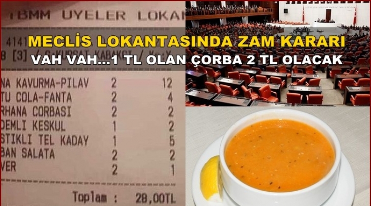 1 lira olan çorbanın fiyatının 2 liraya çıkarılabileceği ancak 6 lira ile 12 lira arasında değişen etli yemeklerde artış oranının daha düşük olabileceği belirtildi. TBMM yerleşkesinde milletvekillerinin yararlandığı üyeler lokantası ile personel ve ziyaretçilerin kullandığı lokantalarda farklı menüler bulunuyor.