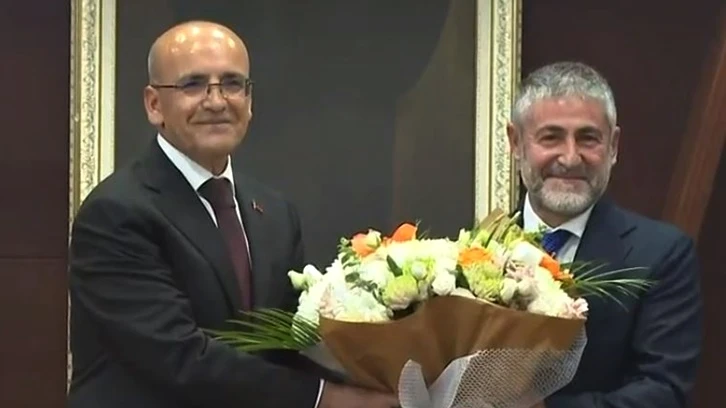 Cumhurbaşkanı Recep Tayyip Erdoğan tarafından Hazine ve Maliye Bakanı olarak atanan Mehmet Şimşek bakanlıkta düzenlenen törenle görevi Nureddin Nebati'den devraldı.