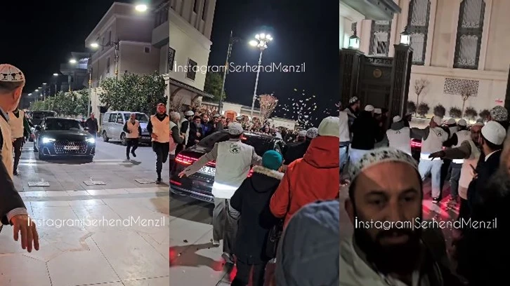Menzil şeyhinin evine girerken çekilmiş görüntülerde, yaklaşık 14 milyon liralık lüks makam aracıyla müritlerinin arasından geçtiği ve müritlerinin yanında koşarak çiçekler attığı görülüyor.