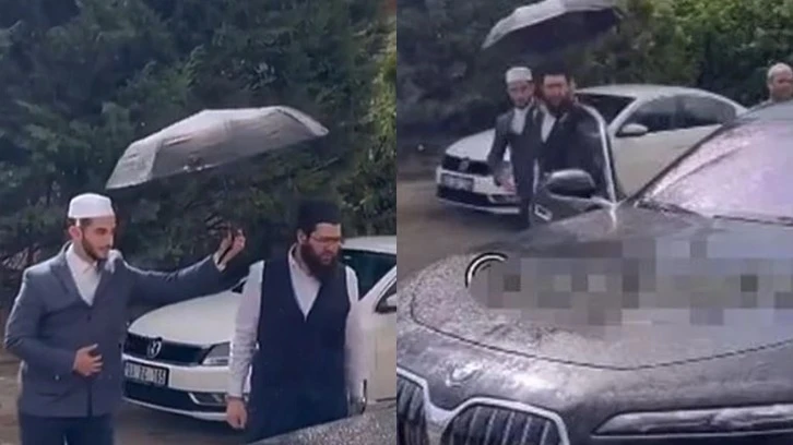 Menzil şeyhi Muhammet Saki Elhüseyni'nin oğlu Rağıp El Hüseyni, lüks otomobilinden inerken yağmurlu havada şemsiye ile karşılandı. Cemaat mensubu bir kişi ise lüks aracından inen El Hüseyni'nin o anlarını kayda alıp sosyal medya üzerinden yayınladı. Vatandaşlara 'az'a tamah edilmesi gerektiği söylenirken, binlerce liralık arabalara binip, lüks yaşam süren Menzil tarikatı üyesinin o anları sosyal medyada dikkat çekti.